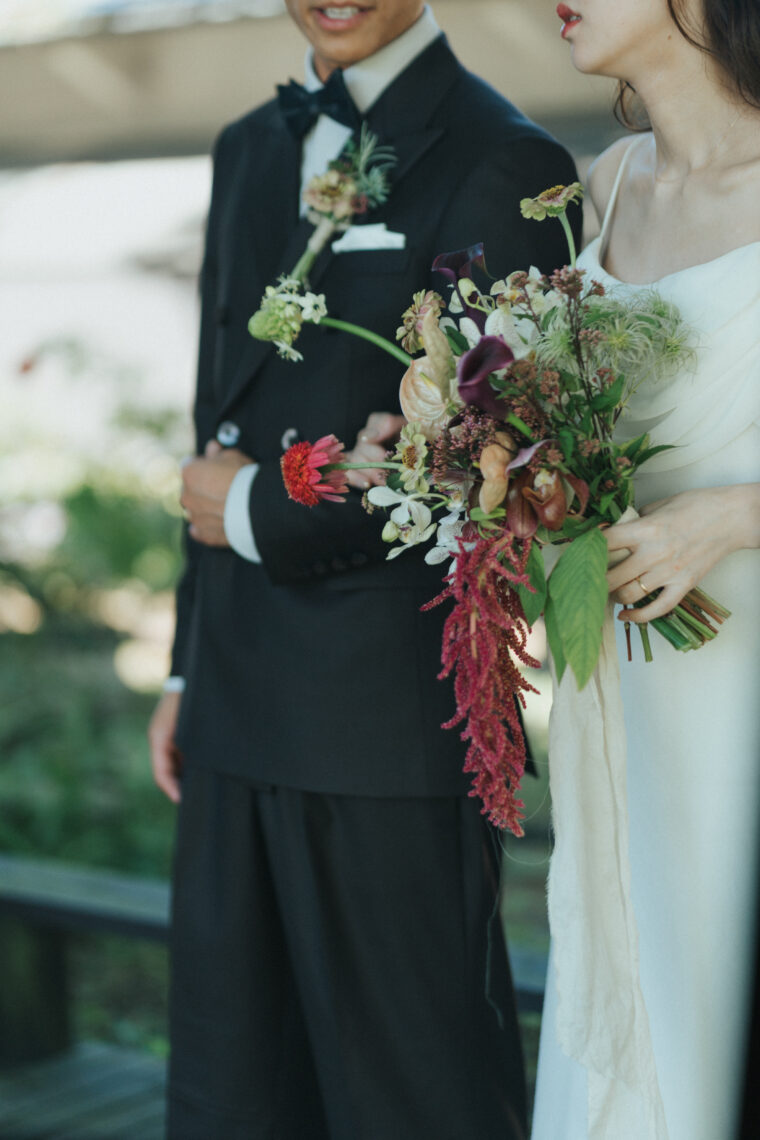 大人っぽくも鮮やかなブーケとのスタイリングも良いアクセントとなり、