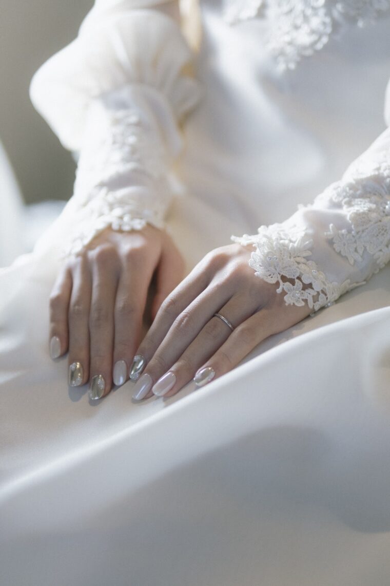そして、そのドレスの雰囲気に寄り添った、繊細で愛らしいネイルのコーディネート。